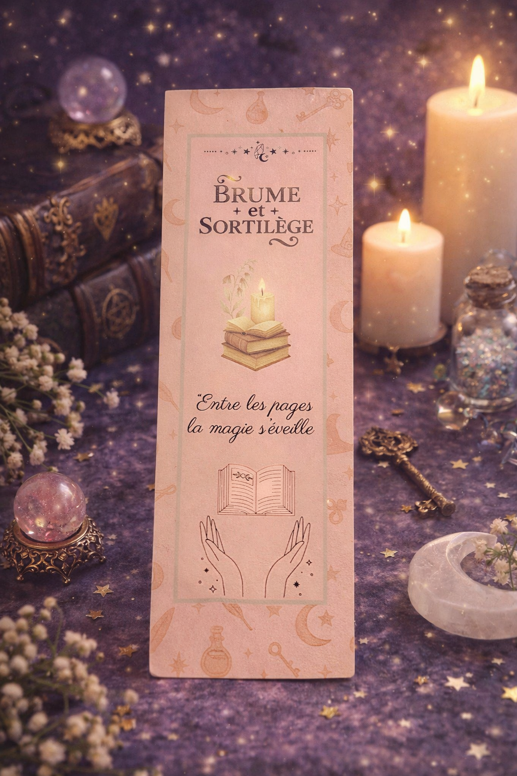 Laissez-vous envoûter par la douceur de Brume et Sortilège, un marque-page empreint de mystère et de poésie.